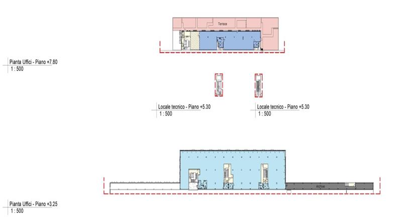 oltre a locali tecnici e una terrazza ad uso degli uffici.