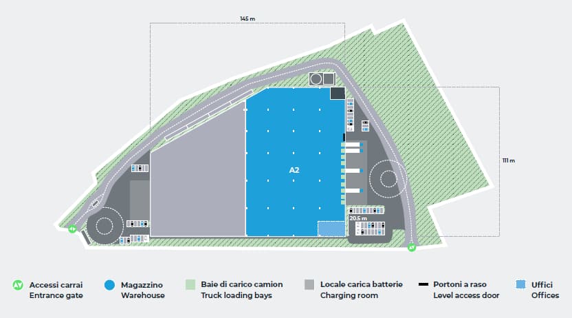 L'edificio offrirà 13.573 mq di magazzino e 883 mq di uffici complessivi