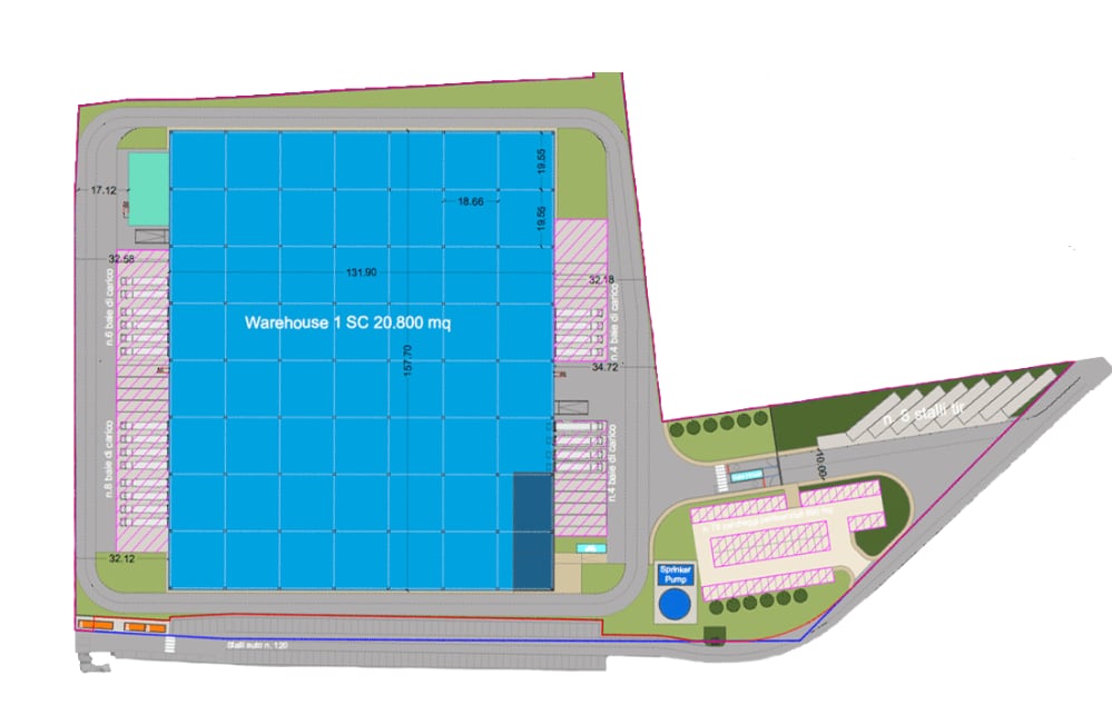 L’immobile si trova nelle vicinanze di un altro lotto di terreno con possibilità di realizzare un altro magazzino logistico di 28.000mq.