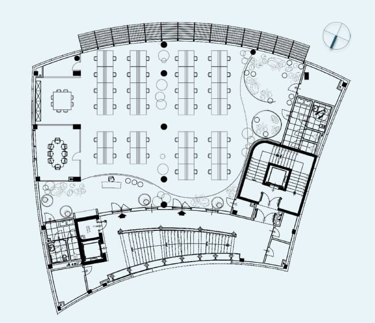 Gli spazi ad uso ufficio hanno una pianta di piano flessibile che garantisce un'ottimizzazione degli ambienti.